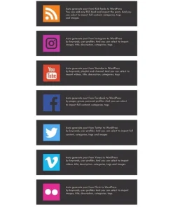 Auto Robot adalah Plugin Wordpress blogging otomatis yang membuat Anda dapat menghasilkan posting WordPress dari banyak sumber artikel, termasuk Umpan RSS, Media Sosial, Video, Gambar, Suara, dll.